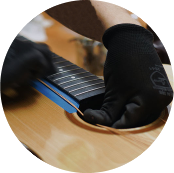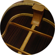 O corte minucioso das pranchas, respeitando veios e espessuras, assegura o toque aveludado e exato de cada som e tom.